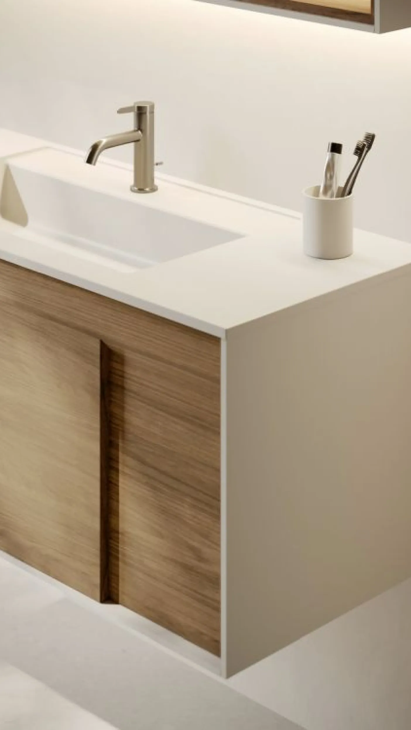 Ob Gäste-WC oder Familienbad – Moto bietet Waschtische in Breiten zwischen etwa 810 bis 1410 mm in Mineralguss oder Keramik. Auch Gäste-Badversionen mit kleineren Maßen sind verfügbar.